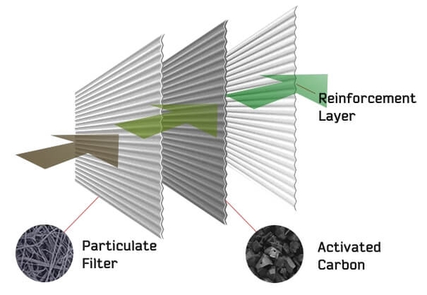 Lọc điều hòa than hoạt tính cao cấp này sẽ cung cấp thêm một lớp than hoạt tính vào phần giữa 2 màng lọc, giúp loại bỏ các chất gây mùi khó chịu cũng như hấp thụ các khí độc hại như Ozone, Sulfur Dioxide và Nitrogen Oxide.